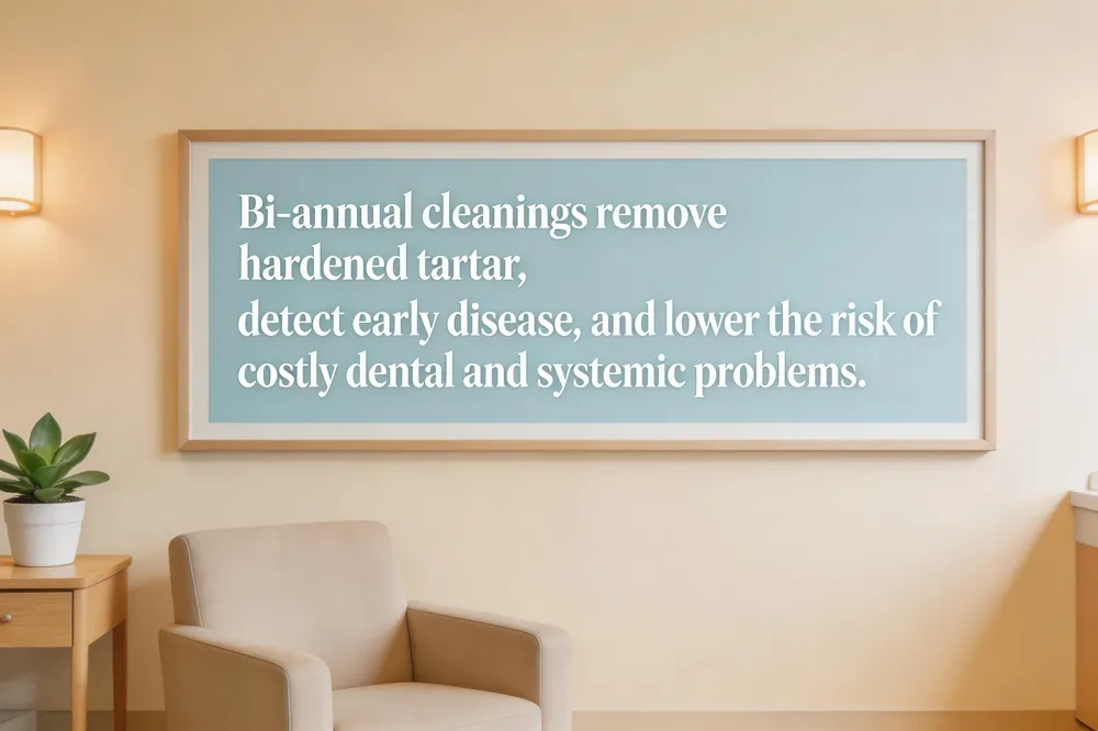 Bi‑annual cleanings interrupt this cycle, removing hidden plaque, polishing teeth, and allowing the dentist to catch early signs of decay, gum recession, or oral cancer before they become costly or painful.
