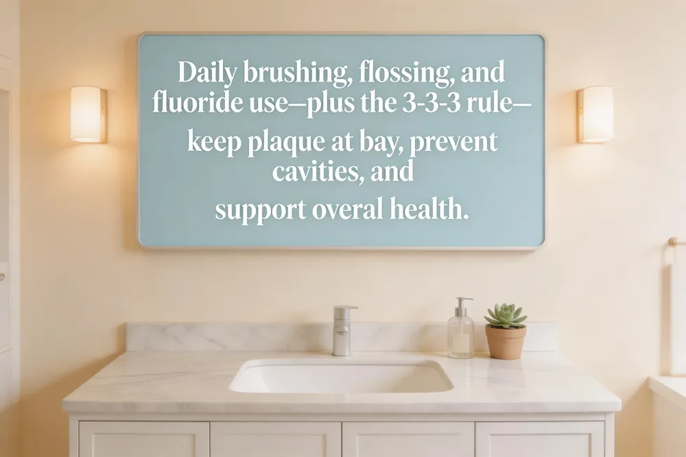 For families, a simple, natural home‑care plan works well: use a soft‑bristled brush, consider oil‑pulling with coconut oil, chew sugar‑free gum to stimulate saliva, and rinse with a fluoride mouthwash. The 3‑3‑3 rule offers a handy mnemonic—brush three times a day, spend three minutes each session, and replace your brush every three months—to keep plaque at bay.