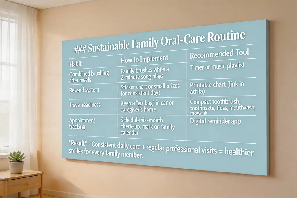 Family Hack – Use a “go‑bag” with travel‑size toothbrush, toothpaste, floss, and mouthwash for on‑the‑go care.