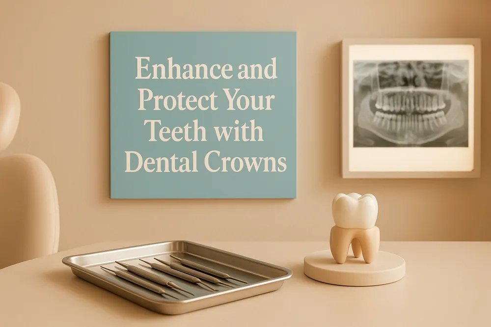 Dental crowns are custom-made caps that cover damaged or worn teeth to restore their shape, strength, and function. They are especially useful for teeth with large fillings, cracks, or after root canal treatment, providing a durable protective layer. Learn more about Dental crowns.