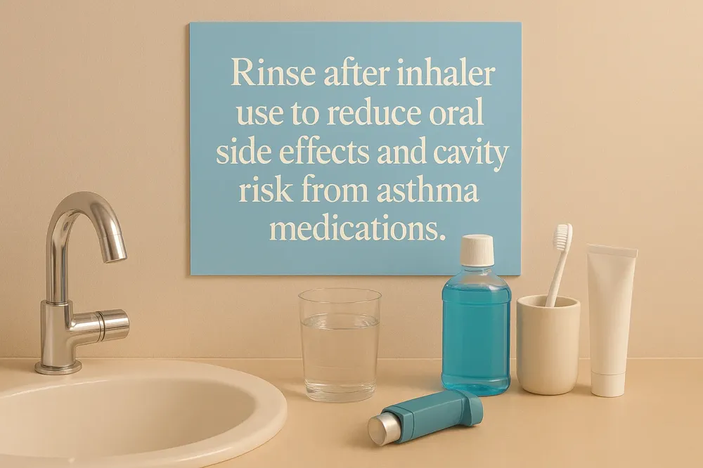 - Rinsing mouth immediately after inhaler use reduces oral acidity and risk of thrush and cavities.