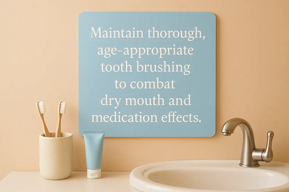 - Brushing twice daily: Ensuring teeth are cleaned in the morning and before bedtime to remove plaque and food particles.