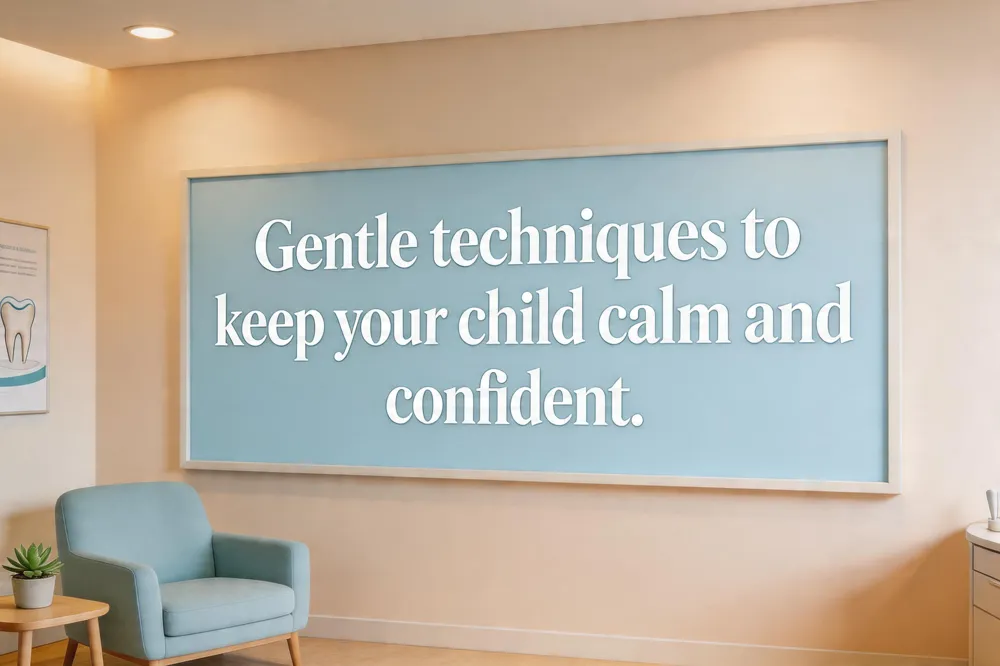Our pediatric dentists first identify anxiety through conversation, observation, and brief questionnaires. They then use calm, patient‑centered communication, explaining each step and inviting questions to build trust. Non‑pharmacologic tools—including deep‑breathing exercises, guided imagery, music or video distraction, and positive reinforcement—lower stress. When needed, mild sedation options are offered in a safe, monitored setting. The office is designed with soft lighting, soothing colors, and child‑friendly décor to make the experience comfortable.