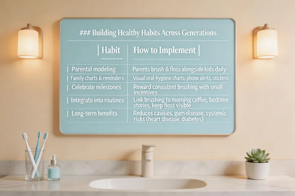 Link brushing to morning coffee or bedtime stories, and keep floss and mouthwash in visible spots.