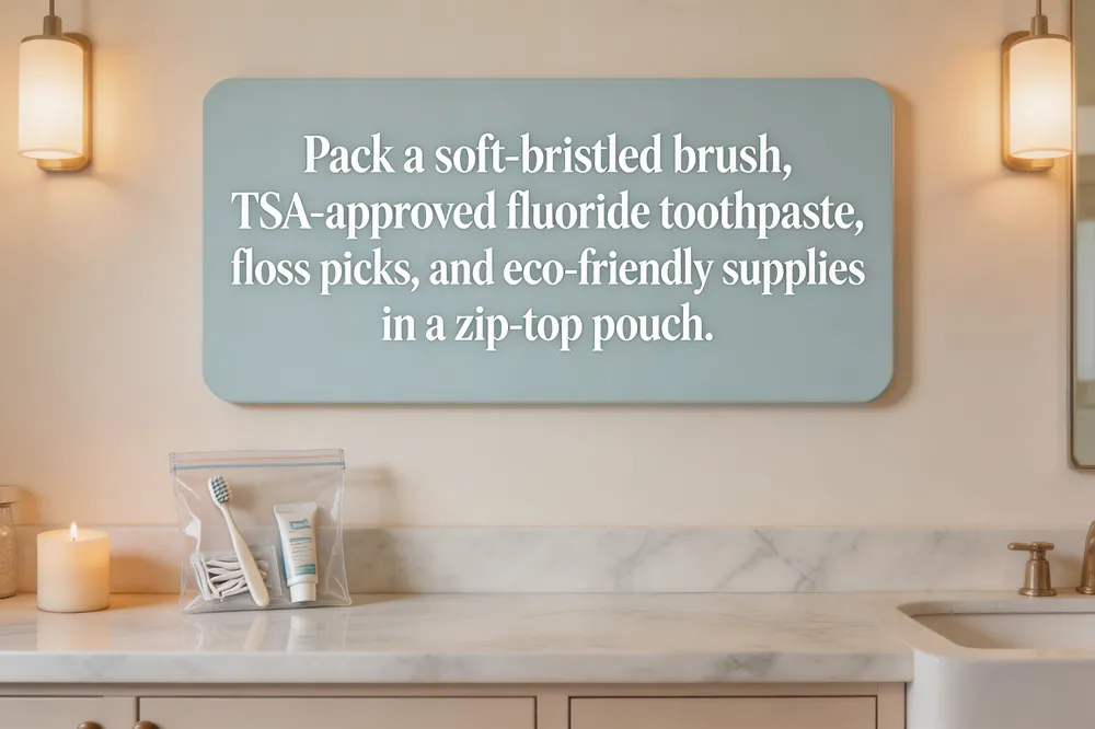 Eco‑friendly and TSA‑compliant options – Choose bamboo toothbrushes, refillable toothpaste tablets, and biodegradable floss to reduce waste while staying within airline regulations. Pack the toothpaste in a clear, resealable quart‑size bag and store the brush in a ventilated case to keep it dry and germ‑free.