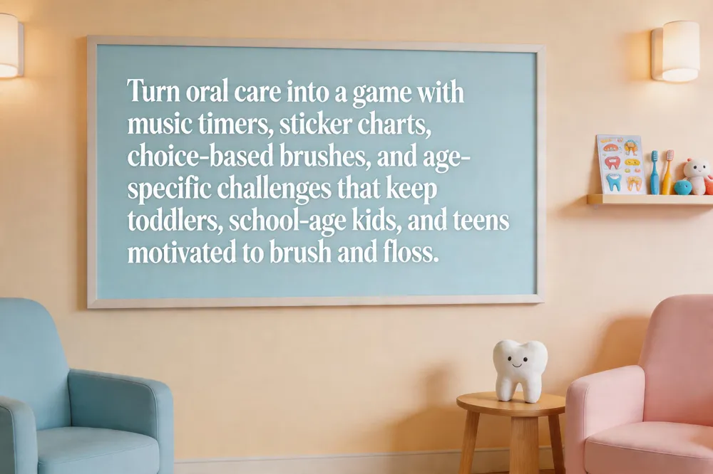 Reward systems work for all ages. Use a sticker chart or digital app to track brushing and flossing streaks, offering small incentives like a favorite snack or extra screen time for kids and a coffee break or short walk for adults. Specialized adult activities can include smart electric toothbrush challenges, tongue‑scraping routines, and periodic oil‑pulling or sugar‑free gum to boost saliva flow.