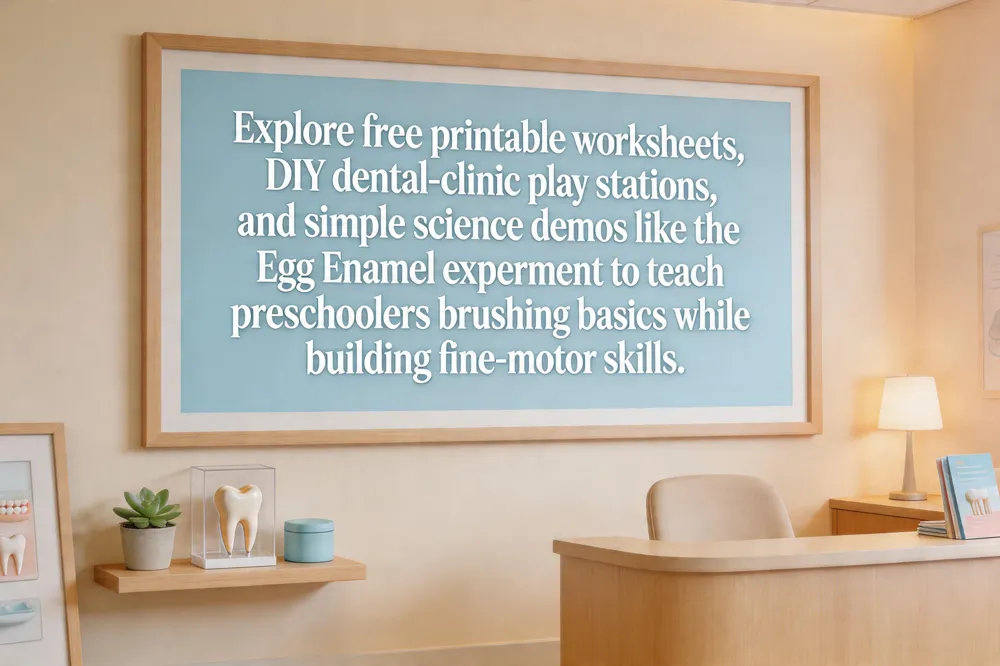 Preschoolers can learn good oral‑health habits through free, low‑cost activities that you can set up at home or in the classroom. Printable worksheets and coloring pages—such as tooth‑shaped cutouts, toothbrush‑coloring sheets, and simple "how‑to‑brush" storybooks—reinforce brushing techniques while developing fine‑motor skills. Turn a corner of the play area into a pretended‑dentist station with a toy dental chair, mirrors, and oversized toothbrushes; role‑play familiarizes kids with dental visits and encourages them to name their brush as a superhero that fights "plaque monsters."
