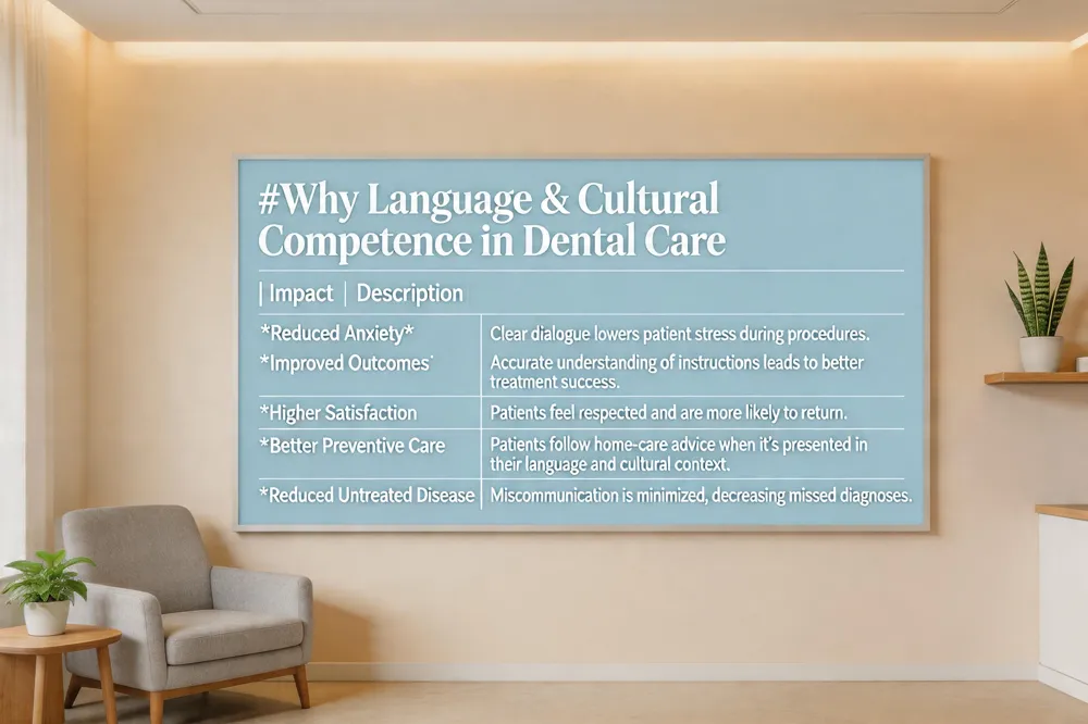 Effective communication is a cornerstone of oral health. The American Dental Association reports that clear dentist‑patient dialogue reduces anxiety, improves treatment outcomes, and boosts satisfaction. When language barriers exist, patients may misinterpret instructions, skip preventive care, and experience delayed treatment—factors that contribute to higher rates of untreated disease among non‑English speakers. In the United States, 21 % of households speak a language other than English, with Spanish being the most common; practices that employ bilingual staff, such as Grace Dental Smiles, see higher patient retention and better adherence to care plans.