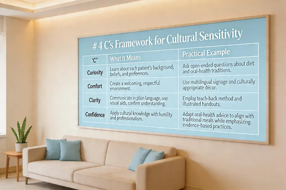 The 4 C’s framework—Curiosity, Comfort, Clarity, and Confidence—offers a practical roadmap. Curiosity drives staff to learn about each patient’s background; Comfort creates a welcoming, respectful environment; Clarity ensures communication is jargon‑free and understood; Confidence lets providers apply cultural knowledge with humility.