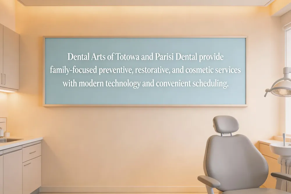 Parisi Dental at 224 Union Blvd. offers a family‑oriented general practice run by Dr. Ernesta Parisi. The practice focuses on routine exams, cleanings, cavity treatment, and a variety of restorative procedures, providing a welcoming environment for patients of every age. Both offices feature modern amenities, such as televisions and blankets in treatment rooms, and provide convenient appointment scheduling—online, by phone, or via same‑day emergency slots—to fit busy family schedules. Call (973) 942‑6467 for Distinctive Dentistry (Best Choice Dental) or (973) 942‑3233 for Dental Arts to discuss insurance coverage, payment options, and personalized treatment plans.