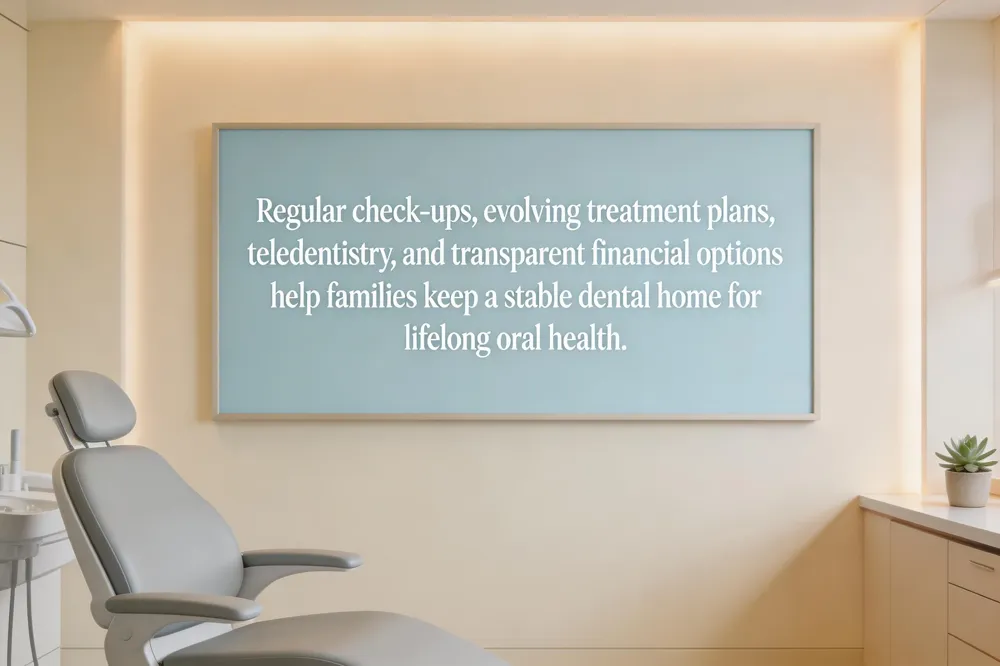 A reliable dental home is the foundation of lifelong oral health for every family member. Regular six‑month check‑ups and preventive care keep cavities, gum disease and more serious problems at bay; most practices, including Elmhurst Family Dentistry and Best Choice Dental, schedule cleanings, fluoride treatments and oral‑health education every six months. Updating treatment plans as families grow ensures that the care you receive matches the changing needs of children, teens, adults and seniors—whether that means adding orthodontic options like Invisalign for a teenager, planning implant‑supported dentures for an older parent, or adjusting preventive protocols for a newborn’s first dental visit. Modern offices leverage teledentistry and digital records so you can securely share images, review treatment histories and receive virtual consultations without missing a school or work appointment. This digital continuity also streamlines insurance claims and makes it easy to track progress over years. Finally, financial planning and insurance re‑evaluation are essential; many family‑oriented practices accept major dental plans, offer transparent cost estimates, and provide financing options such as CareCredit or membership plans for uninsured patients. Regularly reviewing coverage and budgeting for routine or unexpected procedures keeps oral health affordable and stress‑free for the entire household.
