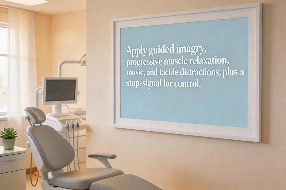 A clear "stop‑signal" agreed on with the dentist (a word, a raised hand, or a squeeze of a soft ball) gives you immediate control, allowing the team to pause if anxiety spikes.