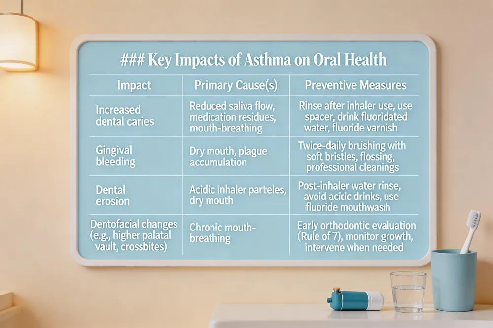 How does asthma affect your teeth? Asthmatic participants have a significantly higher mean number of teeth with dental caries, gingival bleeding, and dental erosion than non‑asthmatics (p < 0.05). The reduced saliva flow, medication residues, and mouth‑breathing all work together to accelerate decay and gum inflammation.
