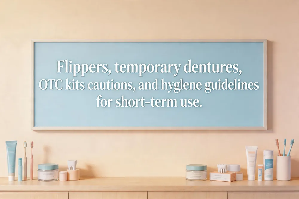 DIY kits and cautions – Over‑the‑counter kits that use thermoplastic beads or orthodontic wax may appear convenient, but they trap bacteria, can irritate soft tissue, and risk shifting neighboring teeth. They are not a substitute for a sterile, clinically‑approved prosthesis. The only home‑care measure that is truly safe is keeping the area clean with a soft brush and a salt‑water rinse while you wait for professional treatment.