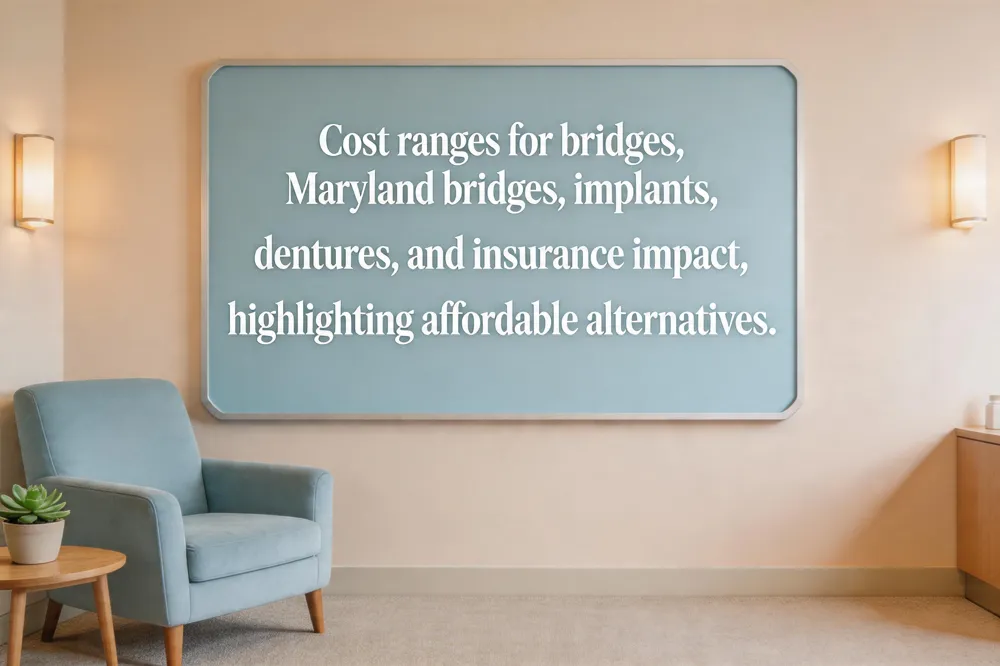 Insurance impact – most plans cover 50‑80% of bridge fees after the deductible, reducing a $3,965 out‑of‑network price to roughly $800‑$2,000 out‑of‑pocket. Implants are often only partially covered, with the crown or bridge portion reimbursed.