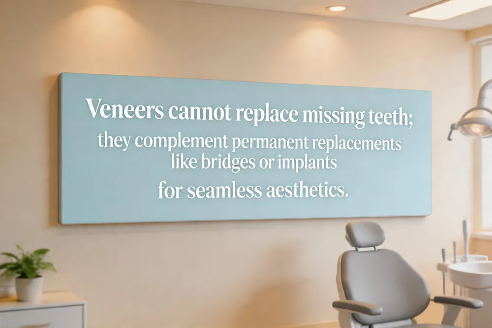 When a tooth is gone, a veneer alone cannot fill the gap because veneers need a healthy tooth surface to bond to. The best approach is to first replace the missing tooth with a permanent solution—such as a dental implant, a fixed bridge, or a removable denture—and then use custom‑made porcelain or composite veneers on the surrounding teeth for a seamless, natural‑looking smile. For patients who are not implant candidates, a Maryland (resin‑bonded) bridge combined with veneers on the adjacent teeth offers a durable, aesthetic result.