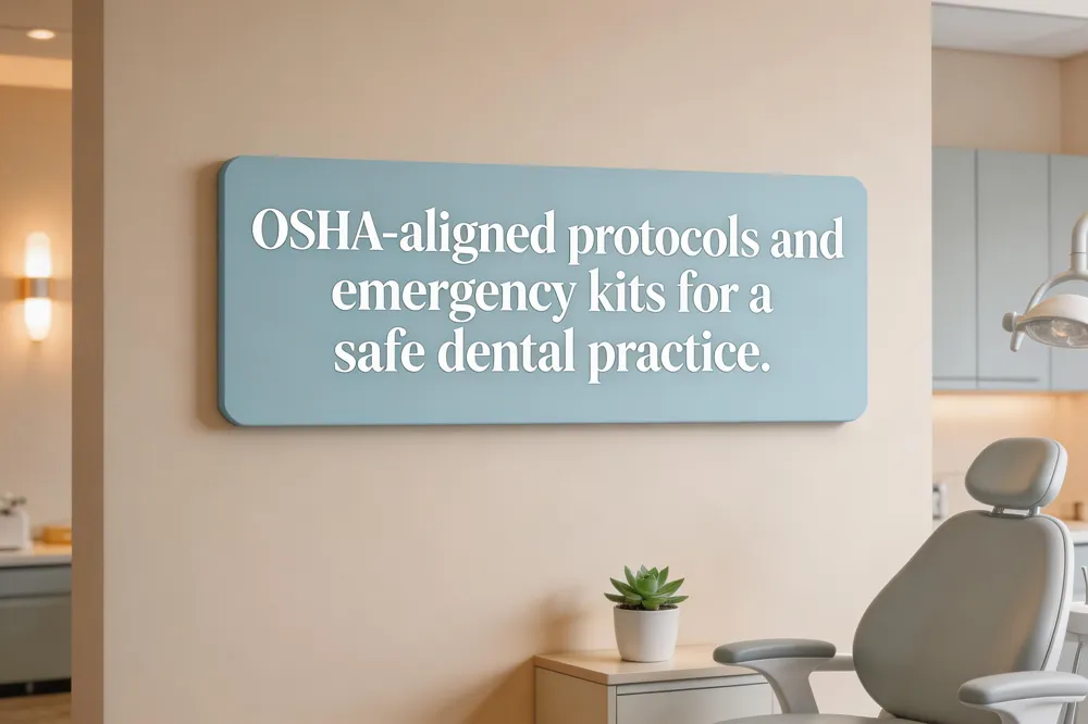 At Best Choice Dental we prioritize both patient comfort and safety, and our emergency preparedness follows OSHA standards and ADA recommendations. OSHA requirements state that every dental office must keep a readily accessible first‑aid kit meeting § 1910.266 App A – gauze pads, bandages, adhesive tape, scissors, blankets, tweezers, latex gloves, a resuscitation mask or bag, elastic wraps, a splint, and clear emergency‑assistance directions. The practice also maintains an emergency‑action plan, provides eye‑wash or drenching stations when chemicals are used, logs all kit contents, and trains staff annually on proper use. Typical kit contents include the seven ADA‑approved medications (epinephrine auto‑injector, albuterol inhaler, diphenhydramine injection, aspirin, glucose tablets, nitroglycerin, and ammonia inhalation aid) plus naloxone if opioids are administered. Basic supplies such as sterile gauze, bandages, antiseptic wipes, a cold compress, dental mirror, tweezers, cotton rolls, oral benzocaine gel, temporary dental cement, an AED, and a printed emergency contact list ensure rapid, effective response to any oral or medical emergency. Regular checks keep the kit current, reinforcing our commitment to safe, personalized care.