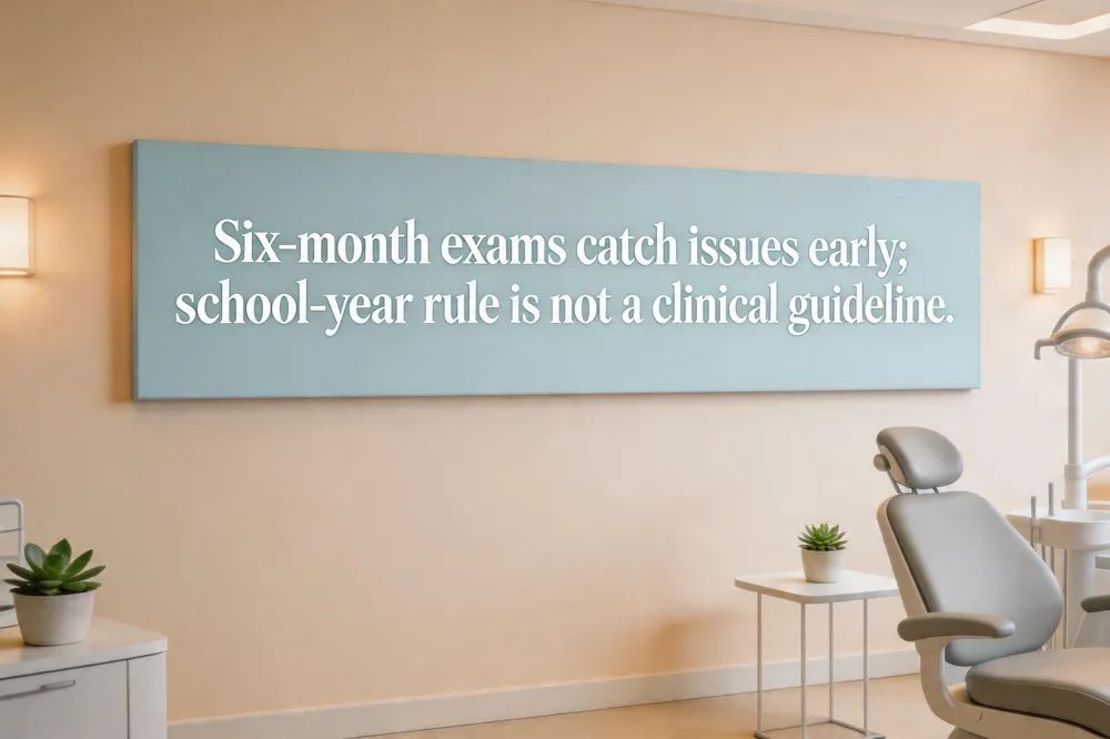 Best Choice Dental recommends a dental exam and cleaning every six months for most patients, with more frequent visits for high‑risk individuals (tobacco users, heavy drinkers, history of oral lesions, or a prior cancer diagnosis). The "2‑year rule"—the idea you can go up to two years without a dentist—is not a clinical guideline; it is an insurance safety net. Routine six‑month care catches problems early and improves survival rates for oral cancer.