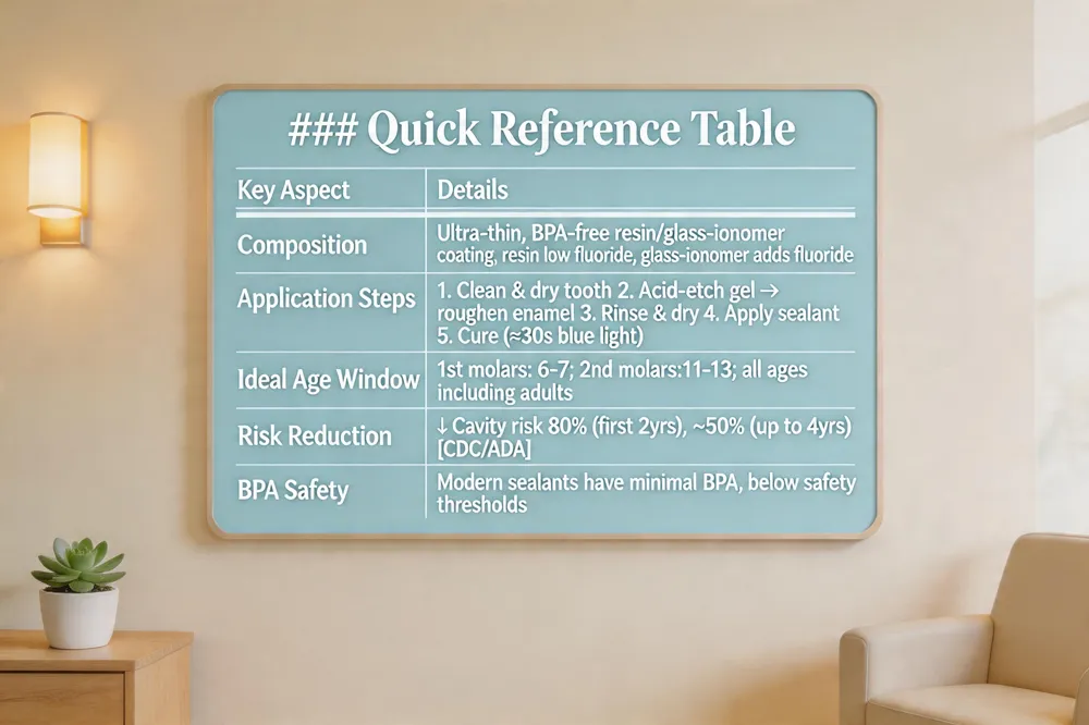 | Composition | Ultra‑thin, BPA‑free resin or glass‑ionomer coating; resin releases little fluoride, glass‑ionomer adds fluoride. |