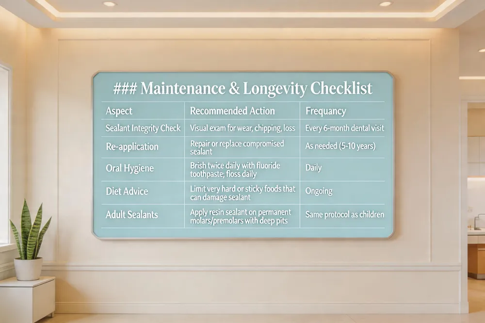 | Sealant Integrity Check | Visual exam for wear, chipping, loss | Every 6‑month dental visit |