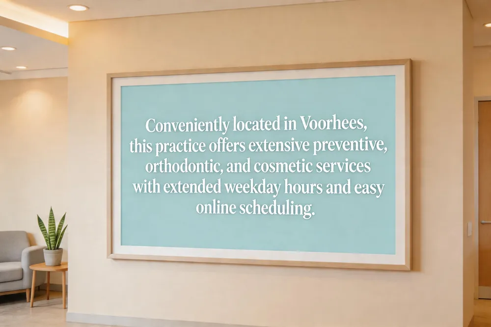Family Dental Care of South Jersey in Voorhees provides a comprehensive, family‑oriented dental hub serving patients of all ages. From routine cleanings, preventive exams, and fluoride treatments for children to advanced orthodontics, implants, and cosmetic dentistry for adults, the practice offers a full spectrum of services under one roof. The office is designed to be anxiety‑free, featuring conscious sedation options, contactless registration and electronic signatures that streamline visits. Multilingual staff members fluent in English and Spanish ensure clear communication, while flexible payment plans and acceptance of a wide range of insurance make care accessible for every family. Led by Dr. Poonam P. Mashru, DDS and Dr. Jeffrey L. Schupper, DMD, the team stays current with continuing‑education training in Invisalign, laser gum surgery, and sleep‑apnea treatment. Patient testimonials consistently praise the friendly, professional staff, thorough care, and the practice’s commitment to building lasting, trusting relationships.