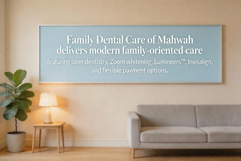 Family Dental Care of Mahwah, LLC is a family‑oriented dental practice located at 153 Franklin Turnpike in Mahwah, New Jersey. The office offers comprehensive general, cosmetic, restorative, orthodontic and implant dentistry, featuring advanced treatments such as laser dentistry, Zoom! whitening, Lumineers™ porcelain veneers, and Invisalign® clear aligners. Their experienced team, led by Dr. Jeffrey W., emphasizes compassionate, patient‑focused care in a modern, relaxing environment. The practice accepts most insurance plans, offers in‑house financing options, and provides a convenient online scheduling system. With a reputation for thorough cleanings, high‑quality restorations, and a welcoming family atmosphere, Family Dental Care of Mahwah consistently receives top ratings from its patients. The clinic’s state‑of‑the‑art laser dentistry and Zoom! whitening complement its cosmetic suite, while Invisalign® and other clear‑aligner solutions address orthodontic needs with minimal impact on daily life. The office design features calming colors, comfortable seating, and child‑friendly amenities that make each visit pleasant for patients of all ages. Flexible payment plans, in‑house financing, and broad insurance acceptance ensure that families can access top‑tier care without financial strain.